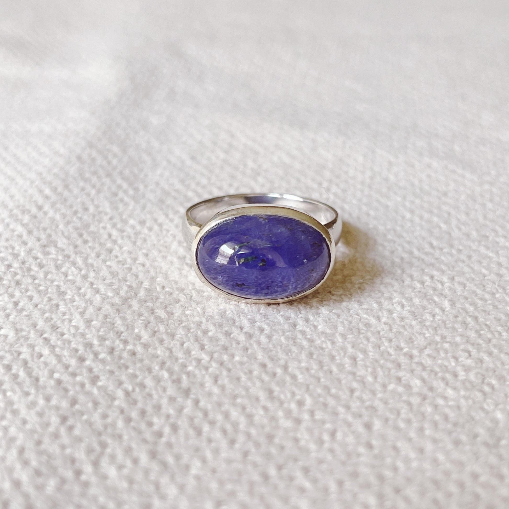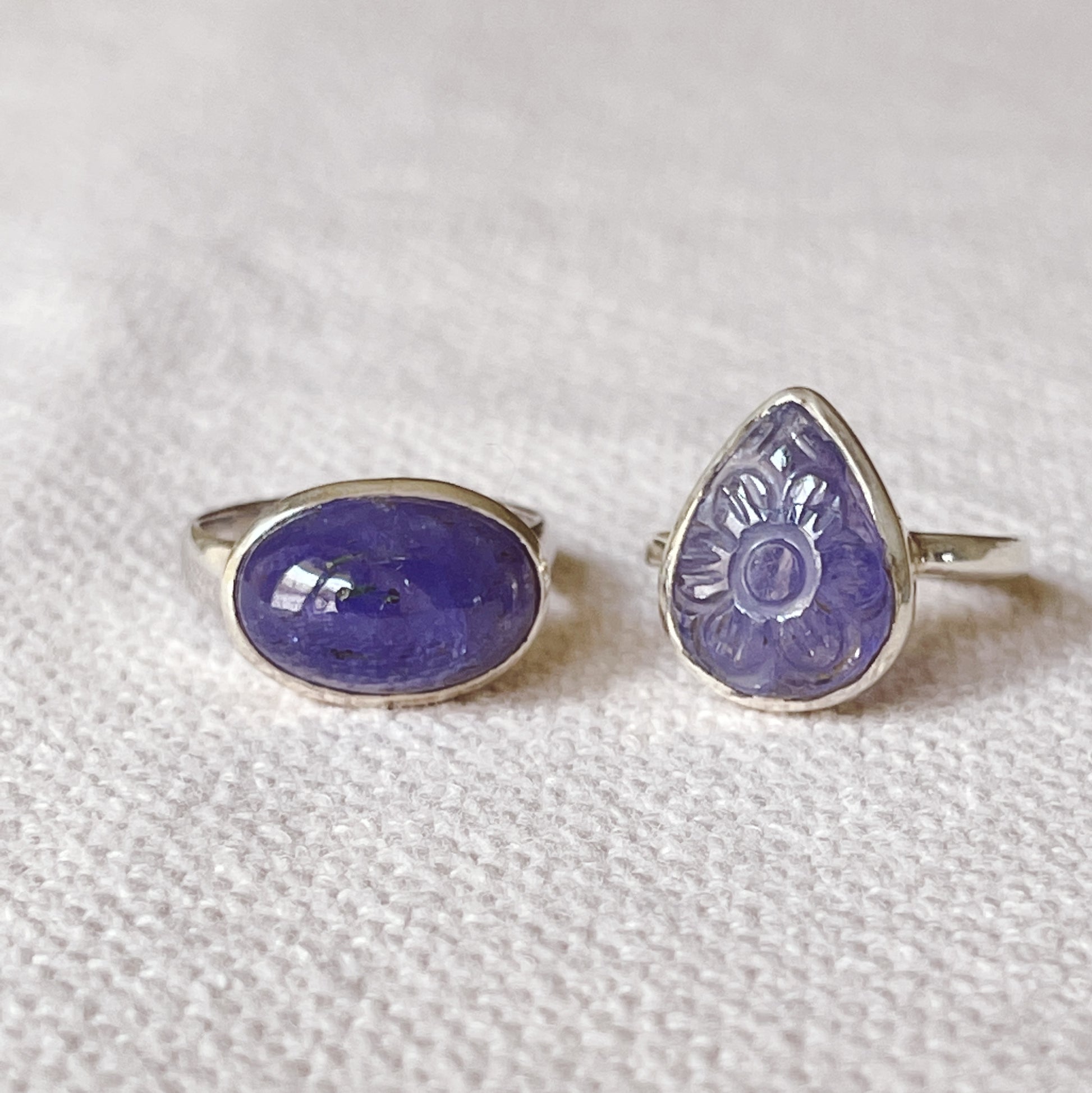 Anelli in argento 925 con pietre di tanzanite taglio cabochon e intarsiate. Pezzi unici.